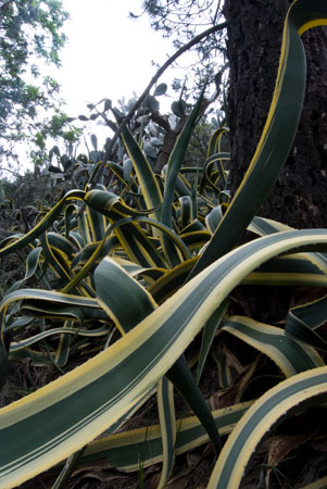 Throughout the late 19th and early 20th centuries immigrants new to the Los Angeles Basin colonized the foothills of the San Gabriel Mountain Range with cabins, lodges and tourist camps. Floods in the 1930s washed most of these structures away, but stone staircases, river-rock walls and exploded gardens of Agave americana gone 80 years feral remain.