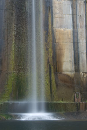 The Arroyo Seco runs through these ruins for most of the year: Perhaps the most idyllic effect of that era of human habitation is the modest waterfall formed by the 50-foot tall debris dam found at the end of a faded trail that runs north from the Paul Little Picnic Area.