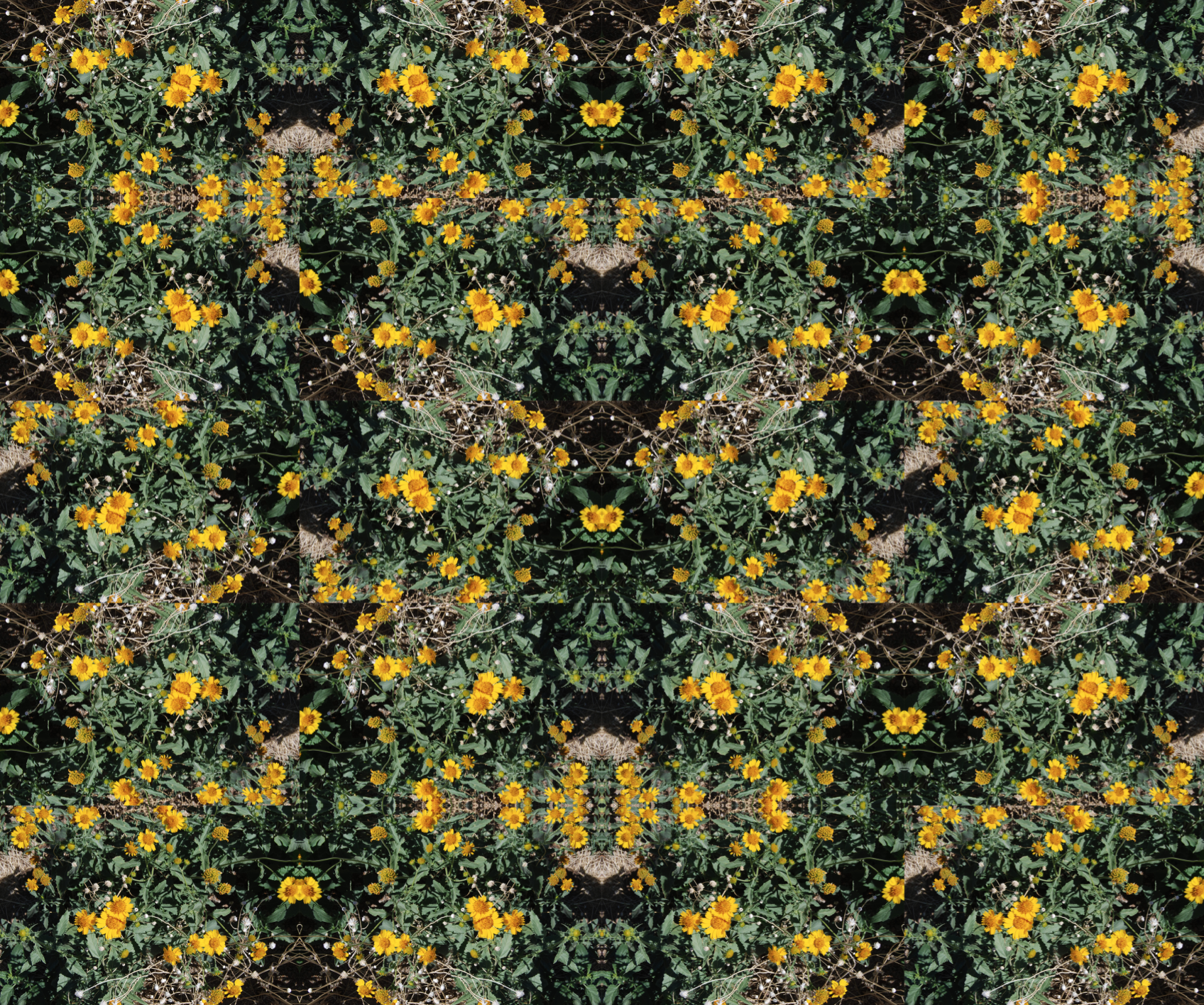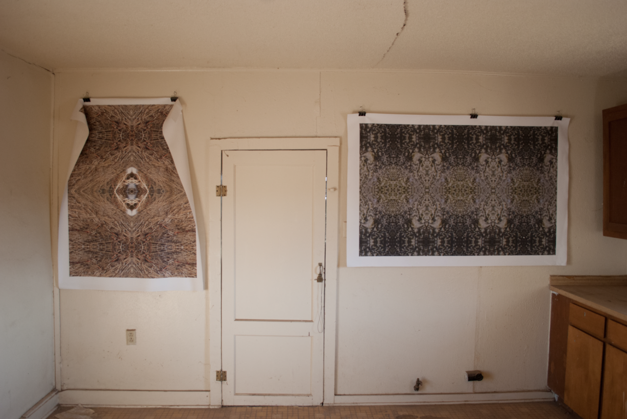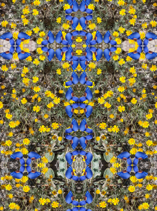 The images in this series were collected on a daylong drive south from Marfa, Texas on Casa Piedra Road in the spring of 2015. The season was known for a historic wildflower bloom that followed an unusually wet winter. The photos are digitally cut, pasted and collaged into sigils and mantras with the intention of warding off depression and fostering communion with the plant mind. Images are printed by Color Wheel Digital with archival inks on Hahnemuhle Bamboo paper. Prints are in unlimited addition, available at $100 and $150.