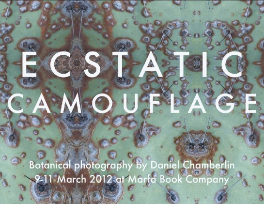 The Marfa Book Company will host an exhibition of new works by Marfa-based artist Daniel Chamberlin entitled “Ecstatic Camouflage” this weekend, March 9 – 11, with an opening for the artist on Friday, March 9th from 6 – 8 pm.